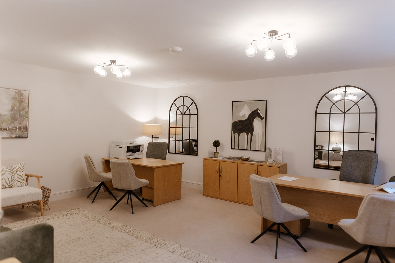 The layout should guide visitors through a clear sequence — welcoming reception, immersive project discovery, comfortable discussion zones, and private closing spaces — using lighting, carefully positioned furnishings and visual anchors to subtly lead movement while building trust and engagement.
